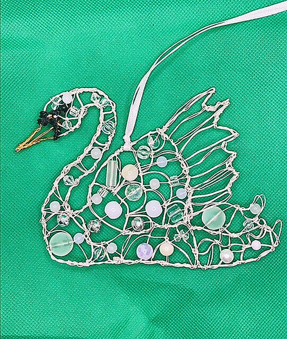 - A dragon decoration with three-dimensional elements. It is handmade from covered copper wire and glass beads, with a satin ribbon attached for hanging. It comes in two colour options: dark green/light green, with a green ribbon and red/gold, with a gold ribbon. You can contact me to request an alternative colour combination. It's size is approximately 29cm by 19cm. The beads may vary from the picture.